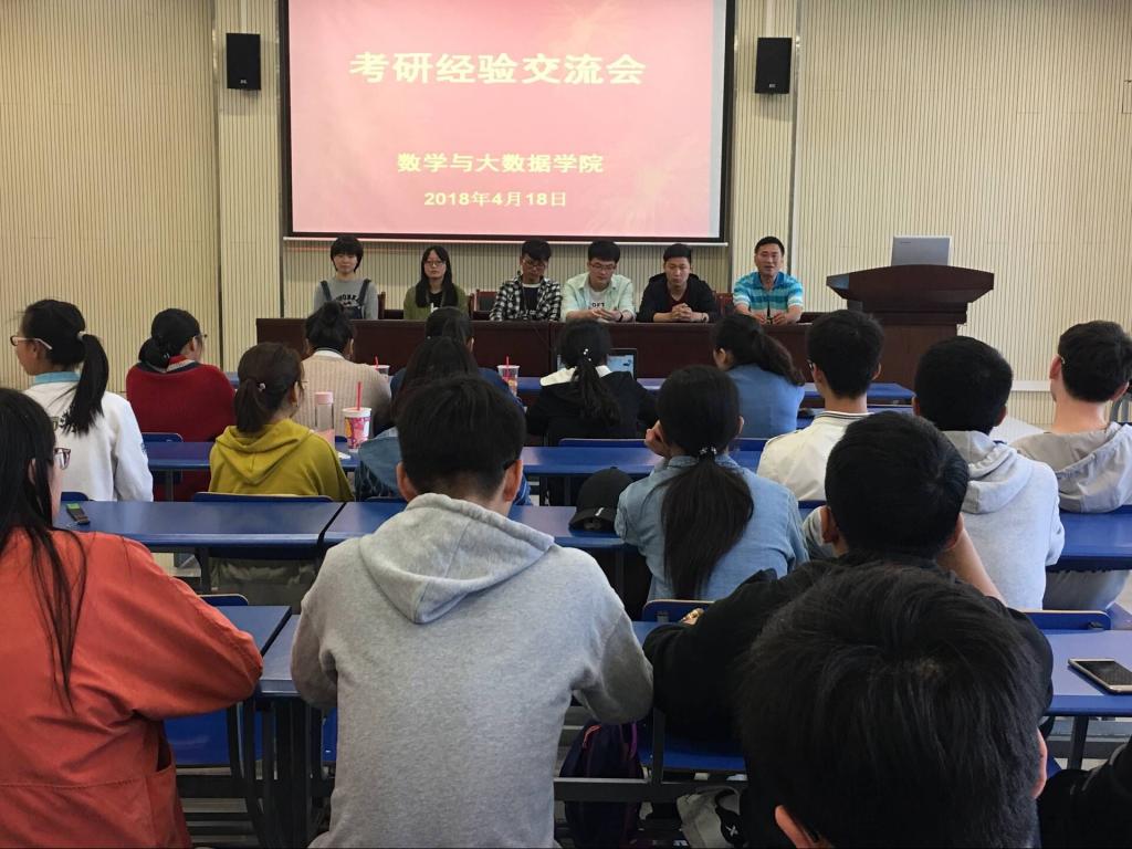 4月18日中午,数大学院在院报告厅举办考研经验交流会。会议由院党委副书记李勇主持。2014级优秀学生代表和2015级全体同学参加了交流会。