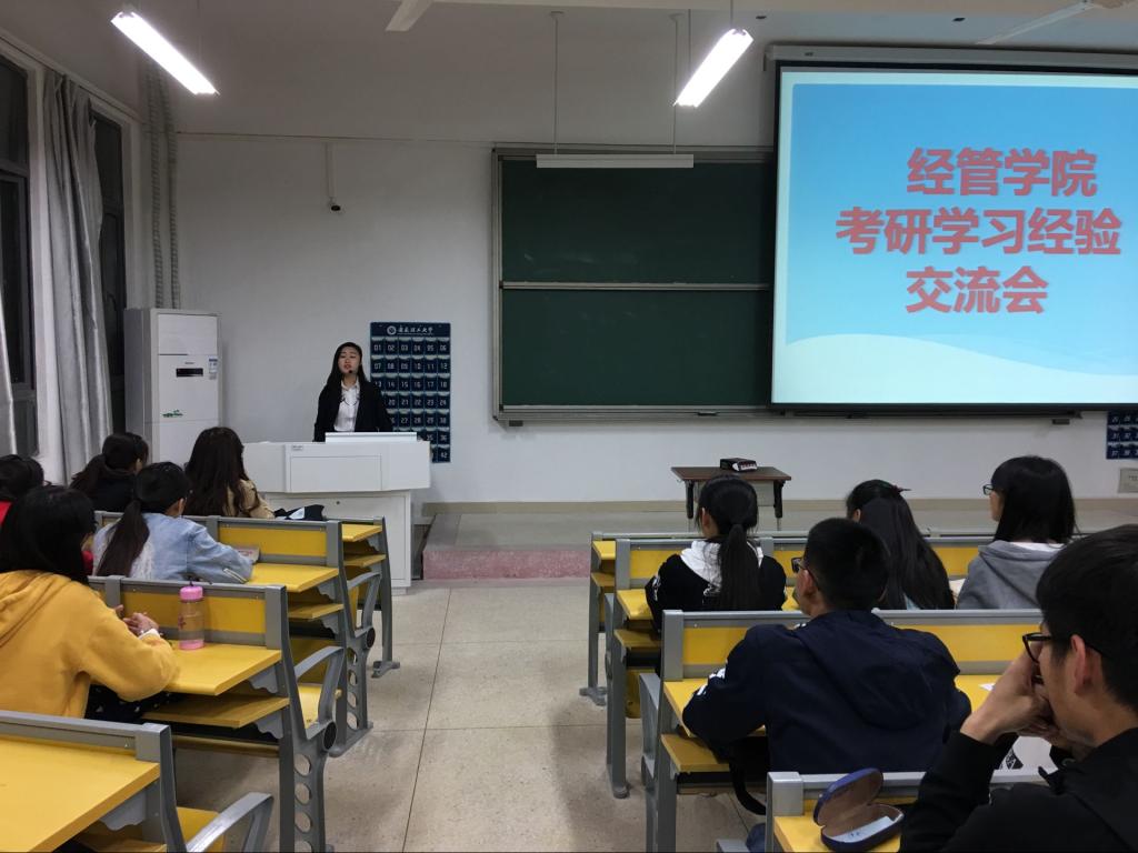 4月13日晚,经济与管理学院在明理南214、216教室分两批次举办考研学习经验交流会。2014级四名优秀学长围绕考研、考公务员、考银行、学科竞赛等方面与低年级同学作了交流分享。学院辅导员和400余名学生参加了交流会。