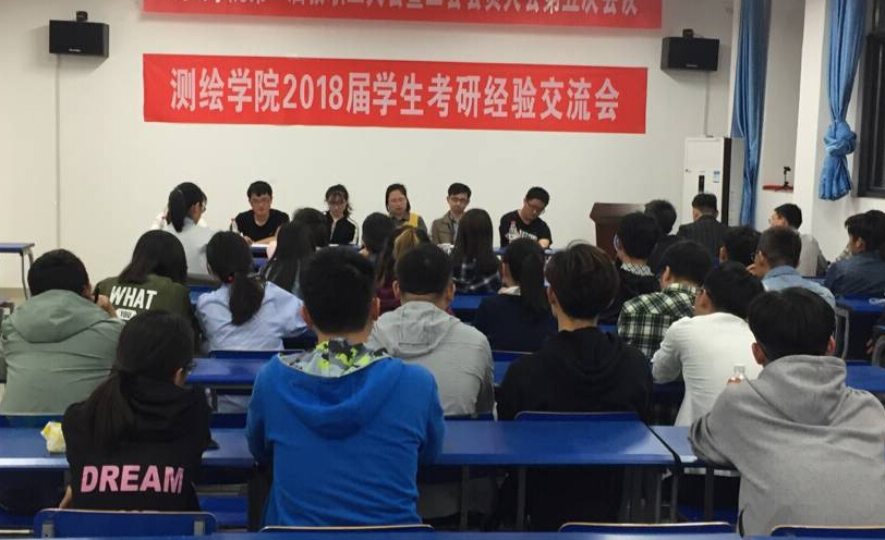4月11日晚上,测绘学院考研经验交流会在学院楼512报告厅举行。2017年考研中成绩优异、经验丰富的8位同学,为2015级50余名弟学妹们答疑解惑。