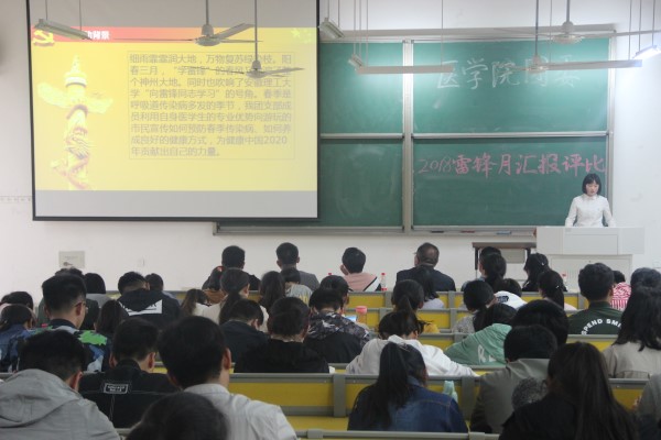 4月1日下午,医学院在明理楼104教室举行2018年度团支部“学雷锋志愿者服务月”活动评审会。医学院党委和医学院全体辅导员参加评审会并担任评委。2017级学生代表约160人观摩学习。