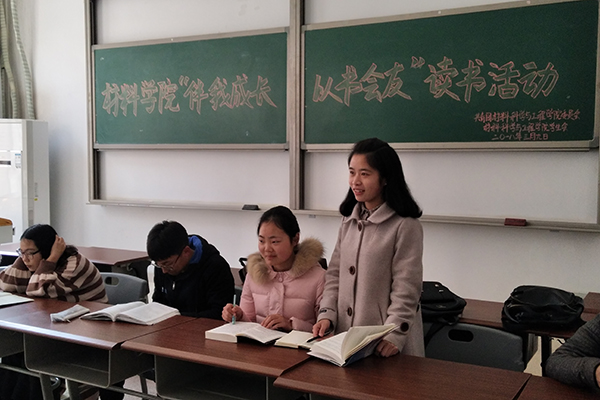 为响应安徽省第二届校园读书创作活动的号召,丰富校园文化生活,3月9日下午,材料科学与工程学院于明理北103教室举办了“伴我成长,以书会友”读书沙龙活动。院学生会30余名成员参加了本次活动。
