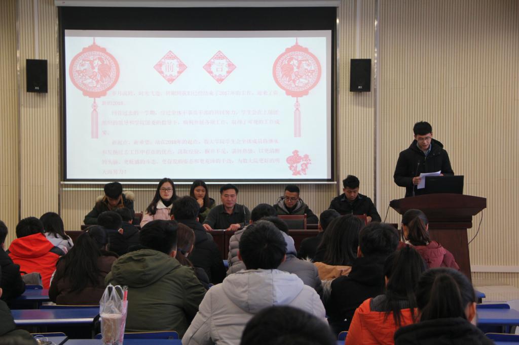 1月15日下午,数学与大数据学院学生会2017年度工作总结暨表彰大会在学院一楼报告厅举行。学院党委副书记兼副院长李勇、团委老师及全体学生会成员参加会议。