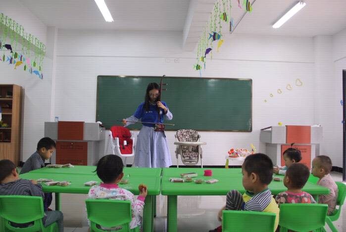 志愿者一行人走进福利院孩子们活动中心,为孩子带去了丰富多彩的节目表演。文艺部杨璨同学带来了一曲动听的《赛马》,二胡演奏的美妙声音将孩子们带入温馨的世界,虽然他们身体缺陷,但他们内心单纯可爱。随后,由学生会成员集体带他们做游戏,孩子们跟着一起舞动双手,打着节拍,现场顿时变成爱的海洋,这份爱超越年龄、身体的界限,让志愿者们真正的融入到这群可爱孩子们当中。