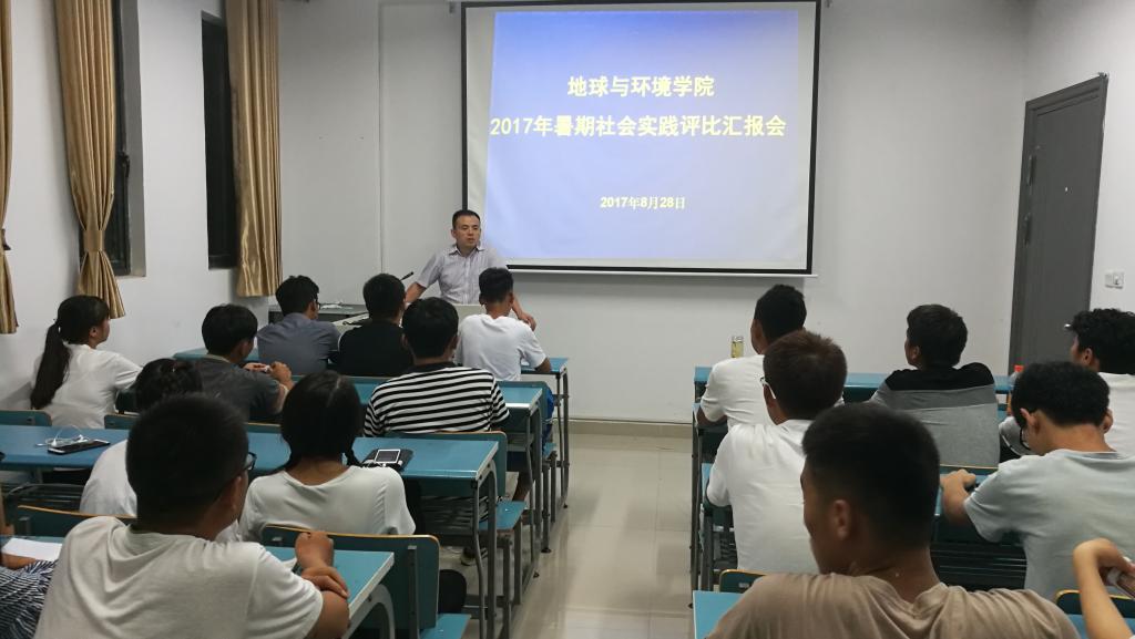 8月28日晚,地球与环境学院在学院101教室举办2017年大学生暑期社会实践评比汇报会。实践团队指导老师和学生代表40余人参加汇报会。