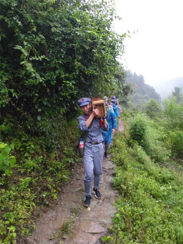 下午,师生们沿着模拟当年革命先辈走过的泥泞小路,体验红军急行军,从井冈山坝上村小学出发,途经桐木岭哨口、五指峰、朱砂冲哨口、龙潭瀑布等地,向象山庵会师广场进行约五公里的山路急行军。
