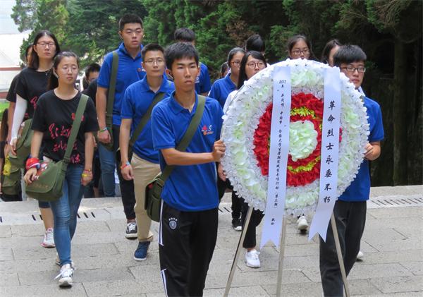 参观旧址,体验革命历程。7月31日上午,师生们前往井冈山革命烈士陵园举行祭奠仪式。怀着对为国家独立、民族复兴而牺牲的四万多名革命先烈的崇高敬意,师生们首先向革命先烈们敬献了花环,共同默哀鞠躬。随后,师生们共同瞻仰了先烈们的光辉事迹,在吊唁大厅,师生们看着墙上嵌刻的一位位在井冈山斗争时期牺牲的英雄姓名以及代表无名革命英雄的无字碑,不禁肃然起敬,泪眼朦胧;忠魂堂里,师生们聆听革命故事,再一次荡涤了自己心灵,更加坚定了为人民服务的宗旨和信念。走出忠魂堂,全体党员师生面对鲜红的党旗,高举右拳,庄严地重温了入党誓词。