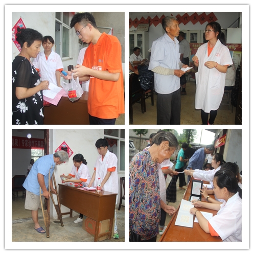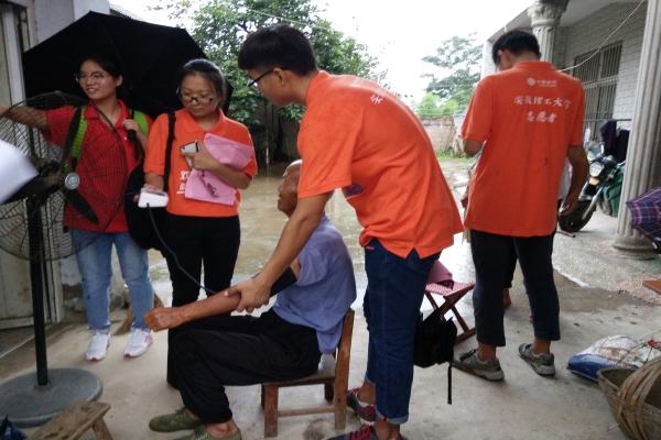 一部分服务团志愿者冒着大雨,走村串户,深入农户家庭,了解农村新医改和新农合的实施情况。调查农民在日常生活中遇到的医疗问题和人们对高血压、皮肤病等常见疾病的认识及预防措施。通过深入农村基层宣传医疗卫生知识,强化村民健康意识,倡导健康绿色生活方式,提高村民预防疾病能力。