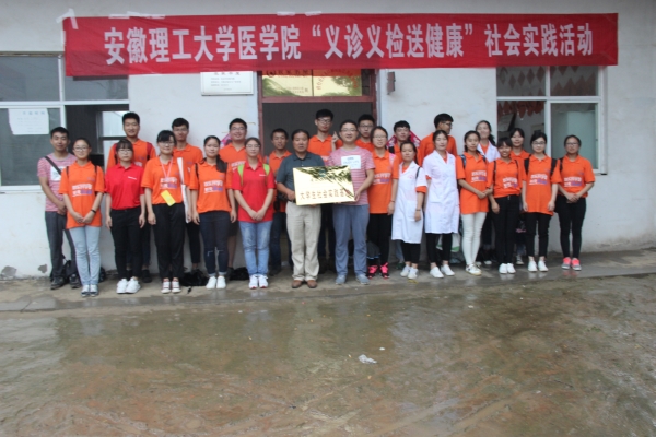 7月7日,医学院精准扶贫基层医疗卫生服务团前往我校干部挂职地——焦岗湖镇孙台村开展“义诊义检送健康”社会实践活动。服务团由我校附属医院(淮南市东方医院集团总院)长期从事临床工作的4名专家和25名医学院学生志愿者组成。