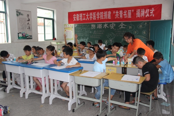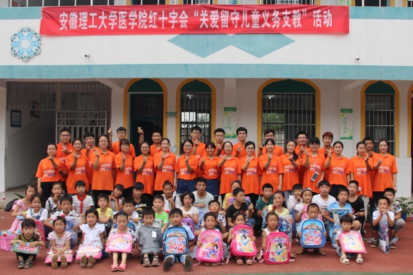 7月8日,医学院志愿服务队在淮南市八公山区闪冲回族小学开展关爱留守儿童义务支教活动。医学院团委书记、团队指导老师和28名红十字会志愿者参加。