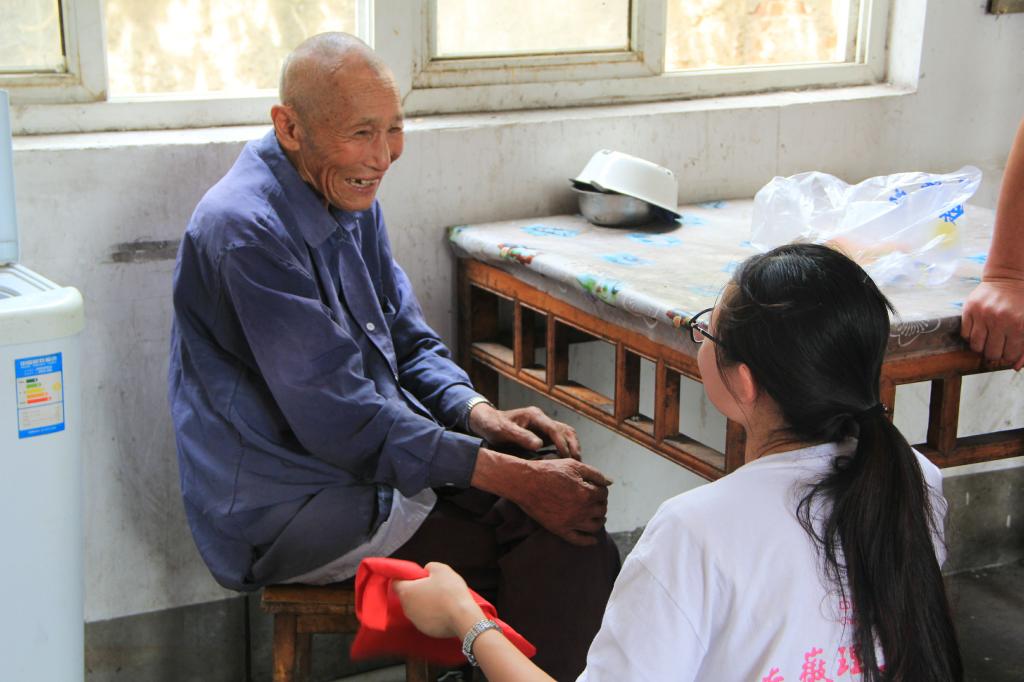 陪老人聊天(摄影:高梦甜)