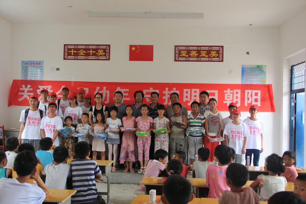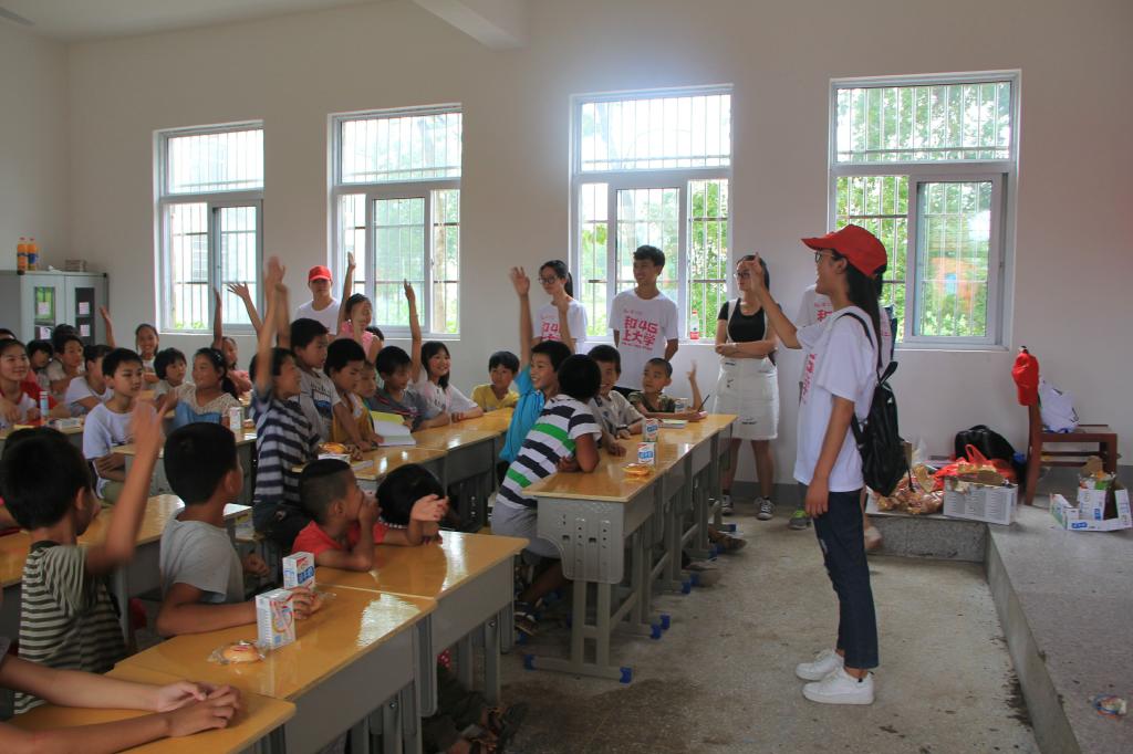 为乡村小学涂上色彩。7月7日下午2点,志愿队乘坐大巴抵达徐老小学,为当地留守儿童送去关怀,送去温暖。志愿者们结合自身专业优势,以“关爱今日幼年,守护明日朝阳”为主题开展了“趣味小课堂”、知识问答、萝卜蹲、儿歌互动等游戏,通过轻松愉快的方式,结合志愿者们的亲身经历向孩子们传授“知识改变命运”的真谛。赵前进、李勇还给同学们分发了带来的小礼物,拿到画笔和图书的小朋友们高兴地把东西抱在怀里,原本拘谨的面孔充满了喜悦。最后一首《大学无疆》校歌为这趟小学之行画上了圆满句号。
