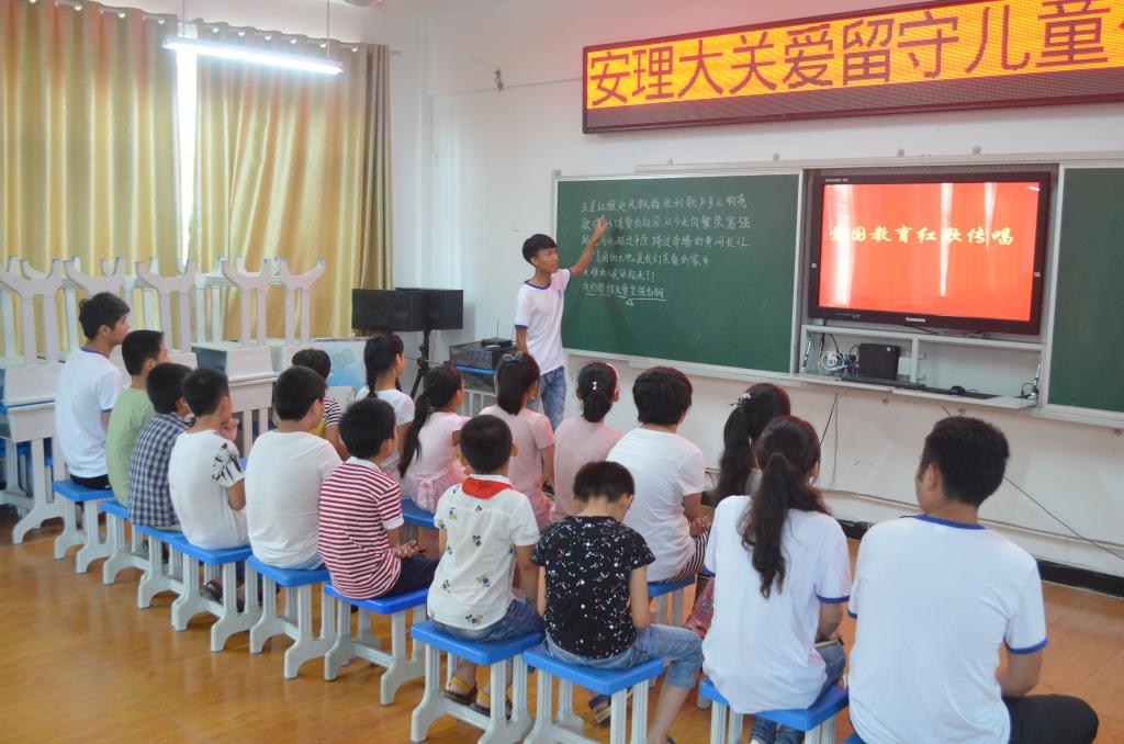 7月7日,活动启动仪式在八公山区第六小学举行。启动仪式上,学院团委老师为留守儿童送上书包等礼物。之后,团队志愿者为留守儿童开展了安全教育和心理辅导。志愿者冯念梅向小朋友们上了一场生动的安全教育课,围绕各种夏季常见的安全问题,向孩子们讲解了相关预防与急救方法,通过动漫视频和图片展示,呼吁同学们重视自身安全并学会基础的安全常识。课堂上,小朋友们认真学习,积极回答问题。杨旭东老师为孩子们开展了一场别开生面的心理帮扶讲座。通过现场组织小朋友们做“认识彼此”的小活动和图文并茂的理论诠释,从多个方面讲解了心理健康的重要性和各种问题,引导留守儿童表达对父母的爱并学会理解父母在外工作的辛苦,教会他们调节自己的情绪。