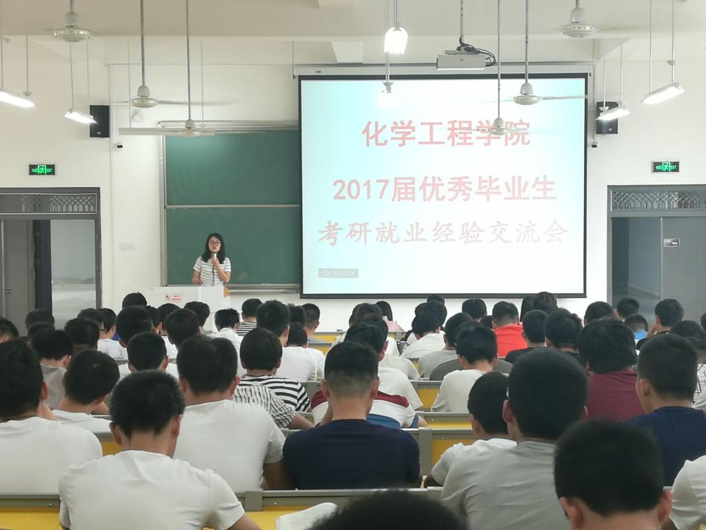 6月14日下午,化学工程学院在明理202教室召开2017届优秀毕业生考研经验交流会,六名毕业生现身说法,向参加交流会的2015级同学介绍了各自在保研、考研方面的体会和经验。学院党委副书记徐泽绵主持会议。
