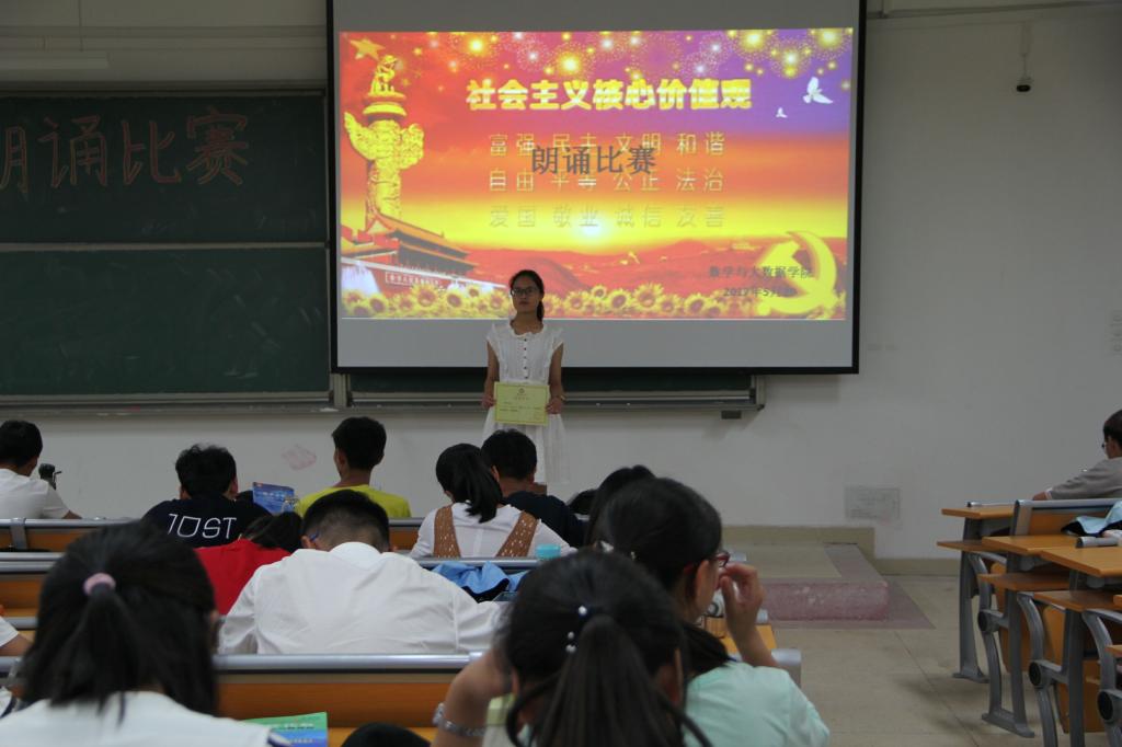 比赛现场气氛热烈,同学们热情高涨。选手们选取的篇目有经典散文、豪迈诗歌、激昂宋词等,体裁丰富,内容翔实。参手们将自己对社会主义核心价值观的理解透过所选文章反应出来。他们表现出的饱满的激情、激昂的语言、真情的流露和大方得体的举止,赢得了现场观众的阵阵掌声。最终,陈夷梦和钱文波同学以出色的表现获得现场评委的肯定,荣获一等奖。