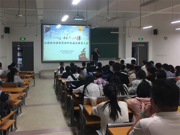 5月17日晚,电气与信息工程学院在天工楼101教室召开了以“讲诚信、懂规矩、守纪律”为主题的科学合理使用国家奖助学金诚信教育大会。学院2016级全体奖助学金获得者和各班级学生干部参加会议。