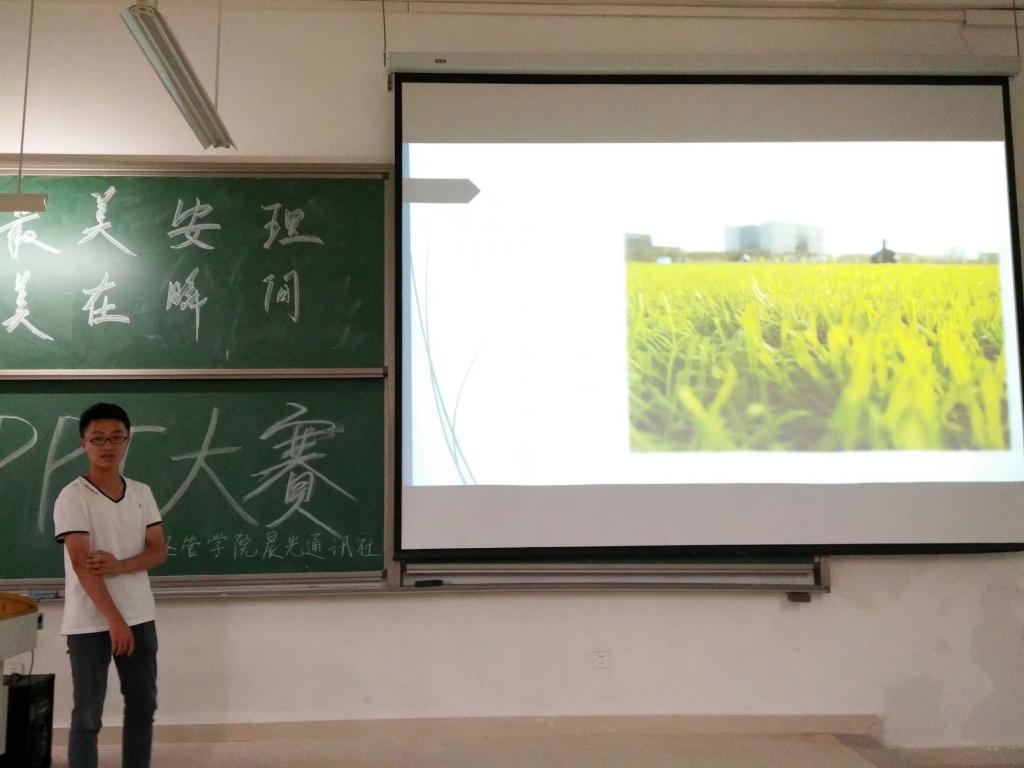 比赛要求选手以学校的风景、人物以及个人情感为主题,讲述自身在安理的所见所闻。比赛中,同学们以制作精美的PPT配上情绪饱满的讲说,多角度全方位展现安徽理工大学不同季节、不同校区、不同的美。有以学生会工作为主线的情感之美;有以讲述校区变迁时光的景物美;有以安理人文为主的人物美。最终,来自人力15-1班张梦、电商15-1班代玉和市场营销15-1班冯凯凯组成的队伍以新颖的主题和淡定自如的发挥获得了此次比赛的第一名。
