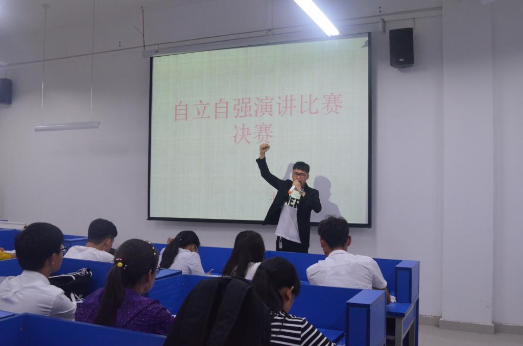 经过班级赛、年级赛最终产生10位选手参加院级决赛。决赛中,选手们结合自身经历,从不同角度阐述了对自立自强的认识和理解,表达了决不向困难低头的勇气和积极进取、励志成才的决心。选手们或伴随着悠扬的音乐,娓娓道来,细腻动人;或感情充沛,慷慨激昂。他们精彩绝伦的演说深深地打动了评委和观众。现场掌声不断,气氛热烈。