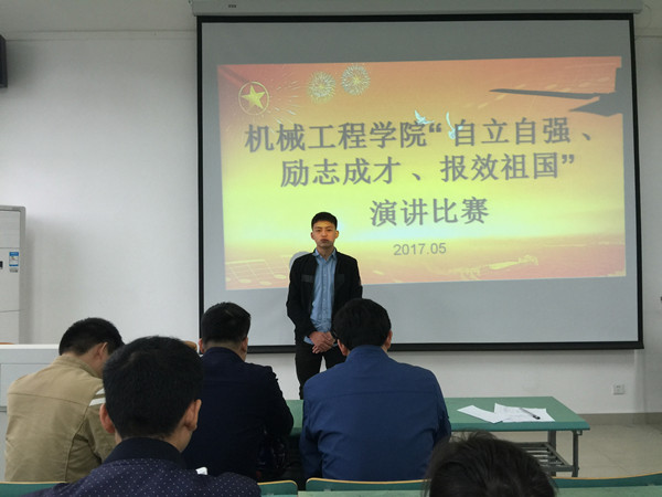 5月9日下午,机械工程学院于励学楼A307教室举办“自立自强、励志成才、报效祖国”演讲比赛。学院党委副书记徐育军,低年级辅导员出席本次比赛并担任评委。来自2016级各专业17名选手参加了比赛。