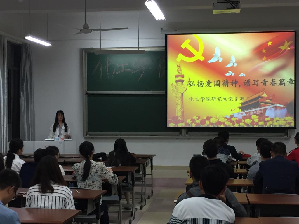 5月2日晚,化工学院研究生党支部在明理北楼205教室召开主题为“弘扬爱国精神,谱写青春篇章”的爱国教育专题座谈会。研究生党支部书记宫婕主持座谈会。研究生支部党员和入党积极分子30余人参加座谈。