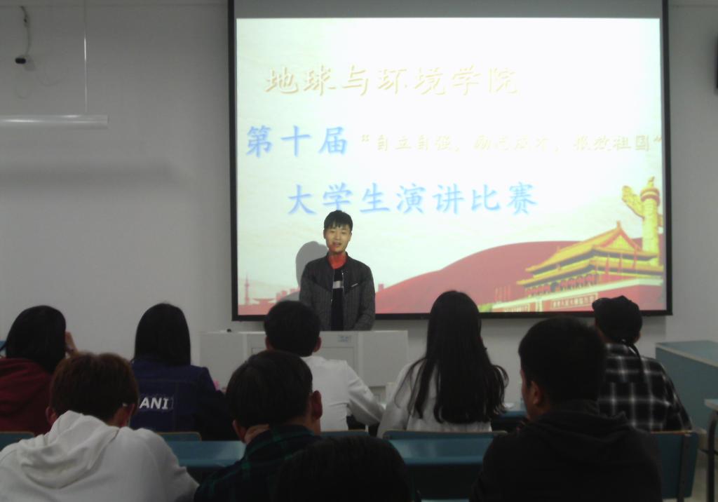 5月2日晚,地球与环境学院在学院楼202教室举办“自立自强、励志成才、报效祖国”大学生演讲比赛,80名学生观看了比赛。
