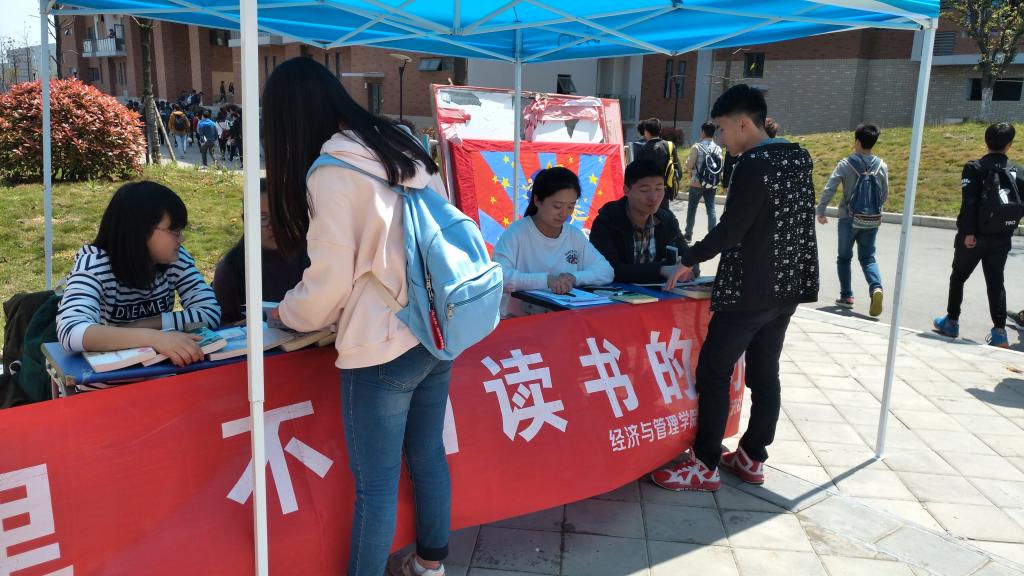 为培养同学好读书,多读书,读好书的习惯,4月26日下午4时,经济与管理学院于爱苑食堂与义苑食堂门口开展的读书漂流活动圆满落幕。本次活动面向全校师生,为期13天。