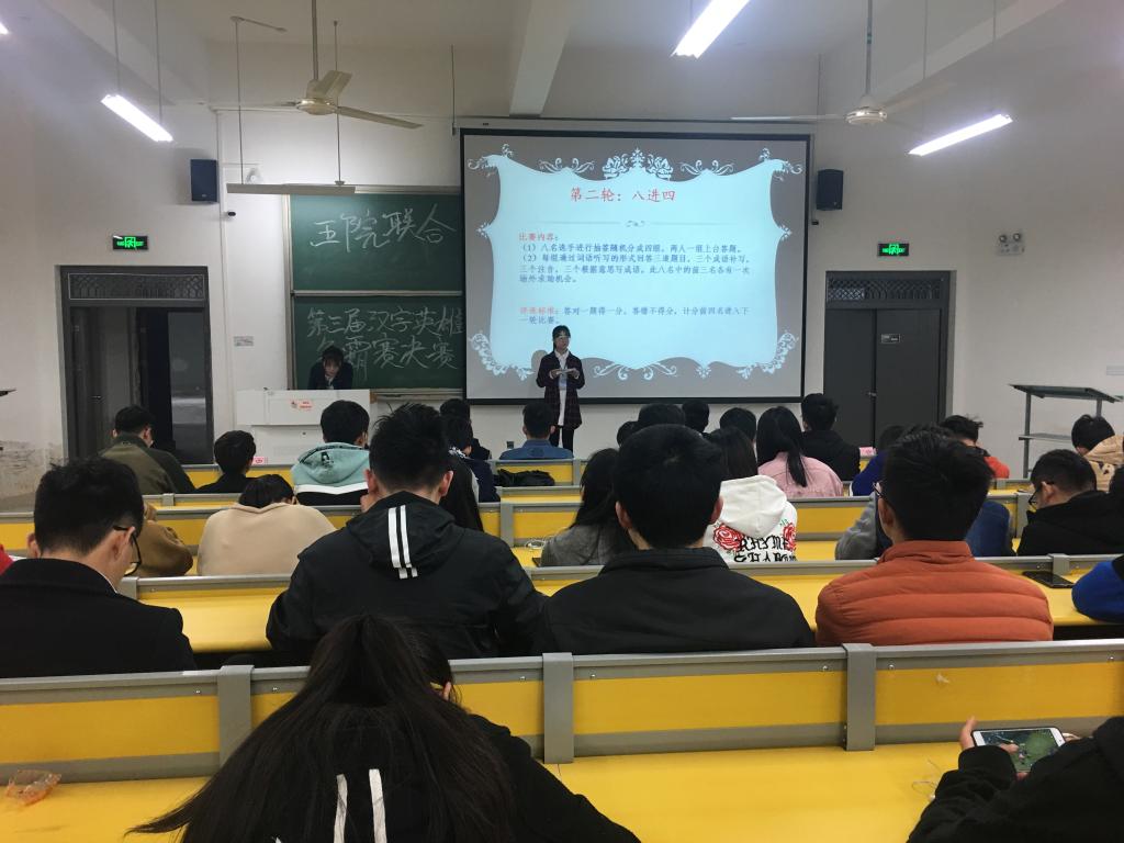 为丰富大学生文化生活,寻找信息时代消失在键盘里的汉字文化,4月9日下午,由机械学院、人文学院、经管学院、计算机学院和外国语学院五院学生会联合举办的“汉字英雄”大赛在明理202教室举行。通过初赛选拔,来自五个学院的20名同学参加了此次比赛。