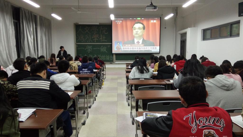 为响应团中央号召,深入开展“一学一做”教育实践活动,3月26日,人文学院团委在天工南楼405教室组织召开了“两会”热点讨论会。学院2016级全体学生参加了讨论会。