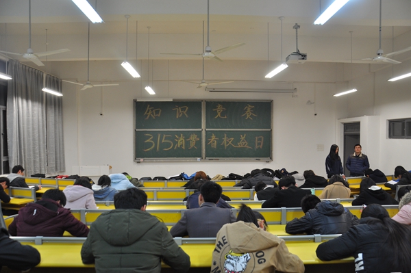 为增强大学生的消费权益保障意识,树立“网络诚信,消费无忧”的消费观念,3月14日晚,电气与信息工程学院团委在明理北108教室举行了“3.15”消费者维权知识竞赛,来自学院2016级各班的180多名学生参加竞赛。学院党委副书记徐关怀及各年级辅导员到竞赛现场监考巡视。