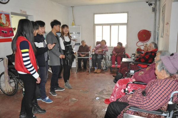 同学们为老人表演节目