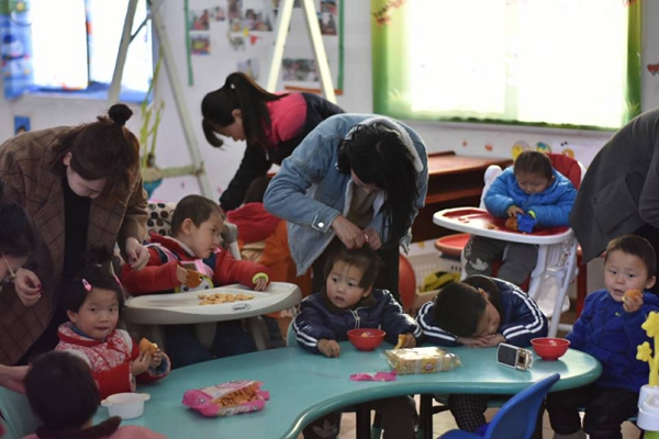 同学们发挥自身的优势,耐心地教孩子们学习简便易学的“手指操”,和孩子们一起同唱好听的儿歌,为小女孩扎辫子。同时还给孩子们讲故事、陪孩子们做游戏,并为他们带去了书本、玩具、食品等礼物。