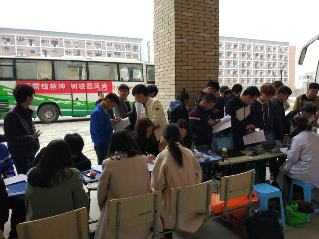 由于活动前期广泛的宣传动员,11日上午8:30,淮南市红十字会的采血车还没停稳,学生们就已在现场排起了长队等待献血。经过志愿者们的有效引导,同学们有序地进行登记、体检、量血压、测血型等环节,顺利通过检查的献血者们自豪地捋起袖子,踊跃献出自己的一份爱心。献血队伍中,有第一次献血的大一新生,也有已经献血多次的高年级同学,大家的献血热情感染了在寒风中忙碌的每一位医护人员。