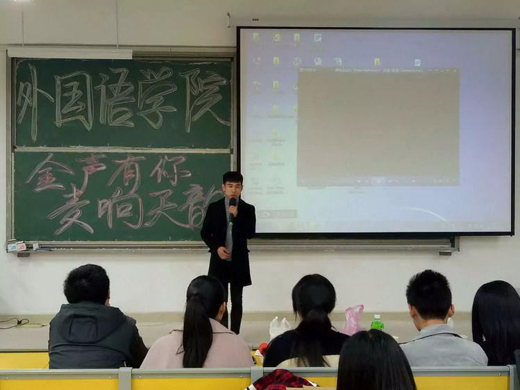 11月11日晚,外国语学院学生会在新校区天工北206教室举行主持人大赛,经过前期选拔脱颖而出的10名大一新生参加了比赛。