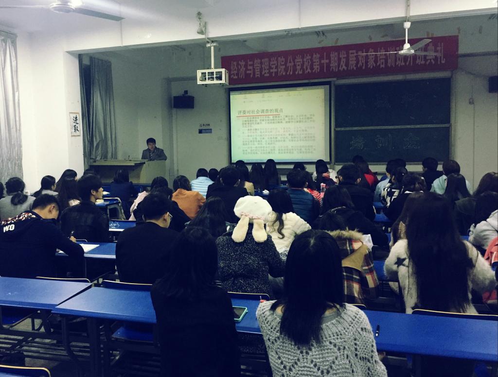 10月28日晚,经济与管理学院于经管楼212教室举办“挑战杯”宣讲会,邀请15届“挑战杯”国赛获奖选手——能源与安全学院高盼军、蒋云、韩靖三位同学作了培训。