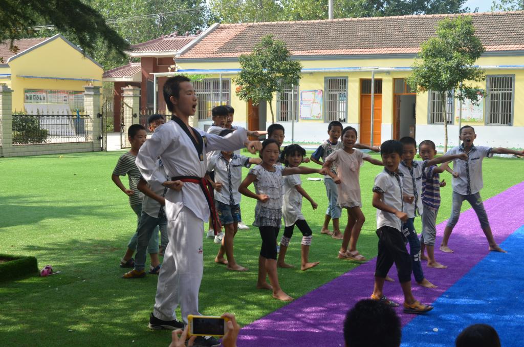 为尽快让留守儿童走出各种“心理阴霾”,团队成员秉承“学中玩,玩中学”的教学理念,以“汗水播种田园课堂,能量传递留守儿童”为主题,在主课作业辅导的同时,带领九十六个孩子走进棋艺、卡通绘画、影视文化赏析、跆拳道教学、音乐、舞蹈等趣味课堂。团队成员和留守儿童一道还走进了当地红色历史教育基地万佛塔、庄子祠,进行乡土探知和红色文化挖掘,激发了儿童们的爱家情怀和爱国热情。