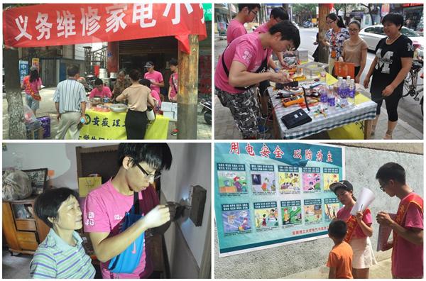 7月12日至13日,电气与信息工程学院大学生科技支农社会实践服务团的成员,来到到桐城市文昌街道建设社区开始了他们的爱心之旅,通过为灾区居民免费维修家电和向受灾小朋友捐赠学习用品等方式,奉献自己的爱心。