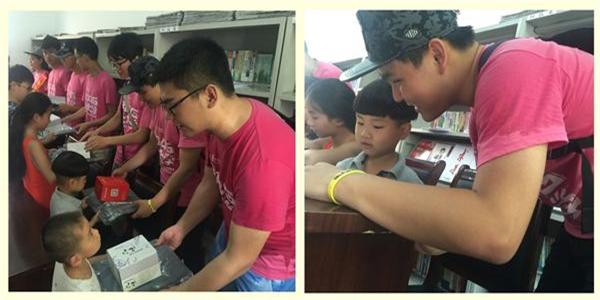 下午,实践团的志愿者们又来到了社区的留守儿童阅览室,为当地受灾的小朋友们送去爱心和温暖。“小朋友们,哥哥给你们讲故事好不好?”“好!”小朋友们异口同声地回答。志愿者和小朋友们打成一片,志愿者给他们讲解灾后常见传染病以及怎样预防传染病,给他们解说书本上的故事,还和他们一起玩游戏。这些平日内向的小朋友,在这一刻变得活泼起来。不仅如此,志愿者们还为小朋友们送去了书包、台灯等学习用具,当孩子们拿到学习用具的那一刻,天真无邪的脸上流露出了欣喜的笑容。