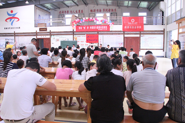 7月18日上午,“2016安徽希望工程暑期田园课堂”公益活动——安徽理工大学能源与安全学院“青春烛梦,伴爱前行”实践团在蒙城县乐途镇双龙村举行开班仪式。安徽省人大代表、双龙村党支部书记柳向阳,蒙城县团县委书记陈露露,田园课堂师生等60余人出席开班仪式。