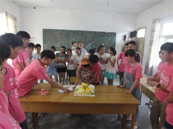 “祝你生日快乐,祝你生日快乐……”7月12日傍晚,阜阳市颍东区插花镇第二学区徐寨小学的教室里,孩子们动听的歌声和奶油蛋糕的香味四处洋溢,燃烧的生日蜡烛映照出小朋友们纯真的笑脸。这是安徽理工大学电气与信息工程学院的16名青年志愿者,正在给当地特困儿童康同学过一个别样的生日。