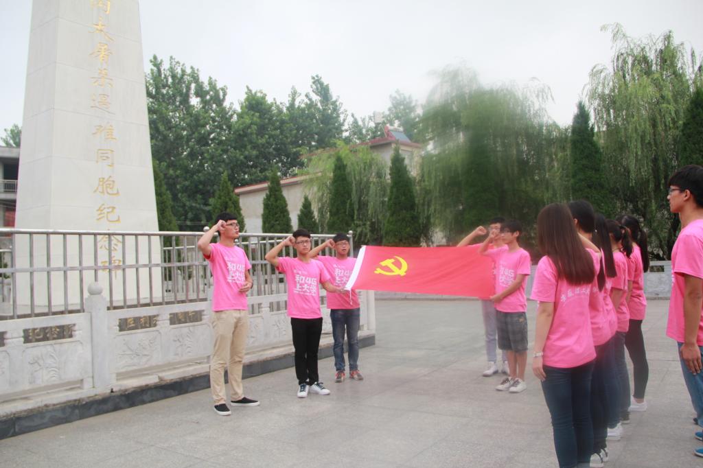 7月9日上午,理学院爱国主义教育团一行12人走进凤台县烈士林园,在听取了遇难同胞的英勇事迹的介绍后,志愿者向烈士深深鞠躬,表达悼念之情。志愿者们在侵华日军三里沟大屠杀遇难同胞纪念碑前重温了入党誓词。大家高举右手,庄严宣誓:“我志愿加入中国共产党……”