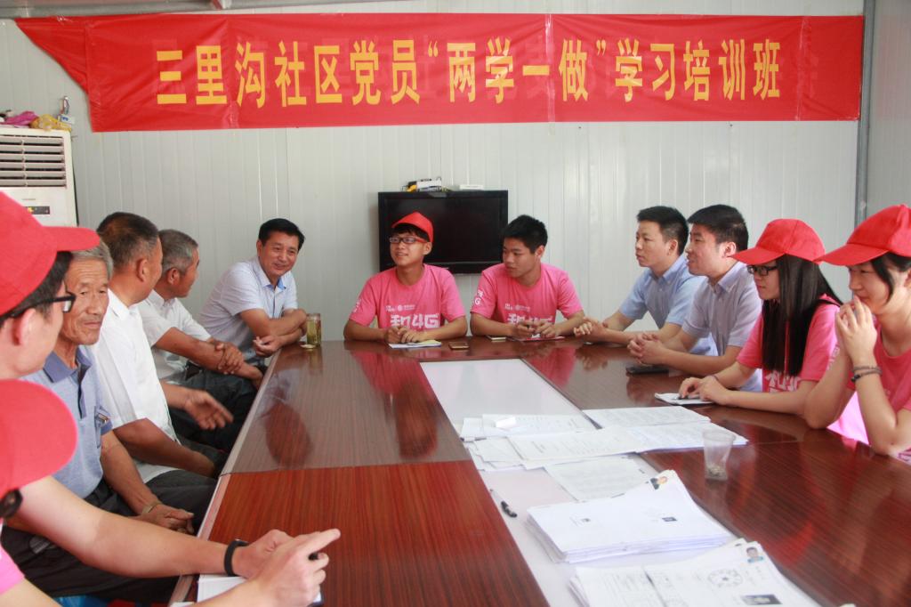 7月7日上午,理学院志愿者“两学一做”宣传团走进凤台县三里沟村召开学习座谈会,学院5名学生新党员和三里沟村的4名老党员就“两学一做”进行了深入交流。学生会主席徐何军说:“作为一名学生新党员,又是学生干部,我在班级工作和学生会工作中以身作则,乐于助人,带领同学们主动学习,参加社会实践,在理论和实践上全面发展。”三里沟村老党员胡泽成说道,“我是一名老党员,几十年的党龄了。在平时生活中,认真学习《党章》知识,在实际中以党员身份严格要求自己,尽自己努力帮助村里人解决生活经济困难。”座谈会现场,大家积极发言,分享自身经历,受益颇深。青年志愿者学习了农村老党员的优秀事迹,表示会在以后的学习工作中认真践行“两学一做”,真正发挥党员模范带头作用。
