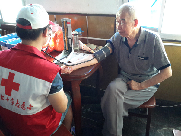 志愿者为抗战老兵量血压(摄影:周子宇)