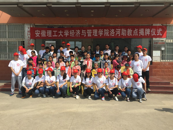 4月30日上午,经济与管理学院益家人志愿服务队在大通区洛河文化站举行洛河助教点揭牌仪式。大通区妇联主席薛玉洁、洛河镇纪委书记兼副镇长常文华、洛河镇妇联主席梁英、洛河中心小学校长王龙银、洛河文化站站长汪孟双、经管学院团委副书记李双双和志愿者及受助留守儿童等出席本次揭牌仪式。