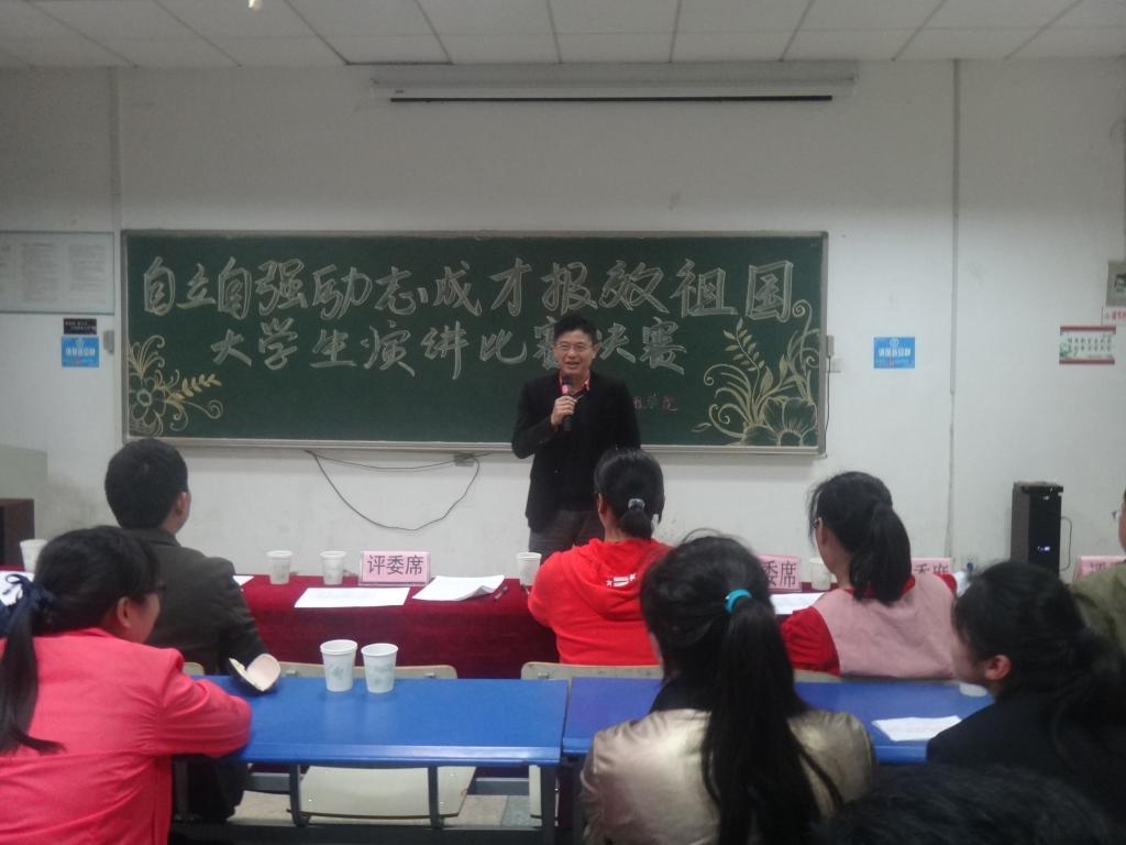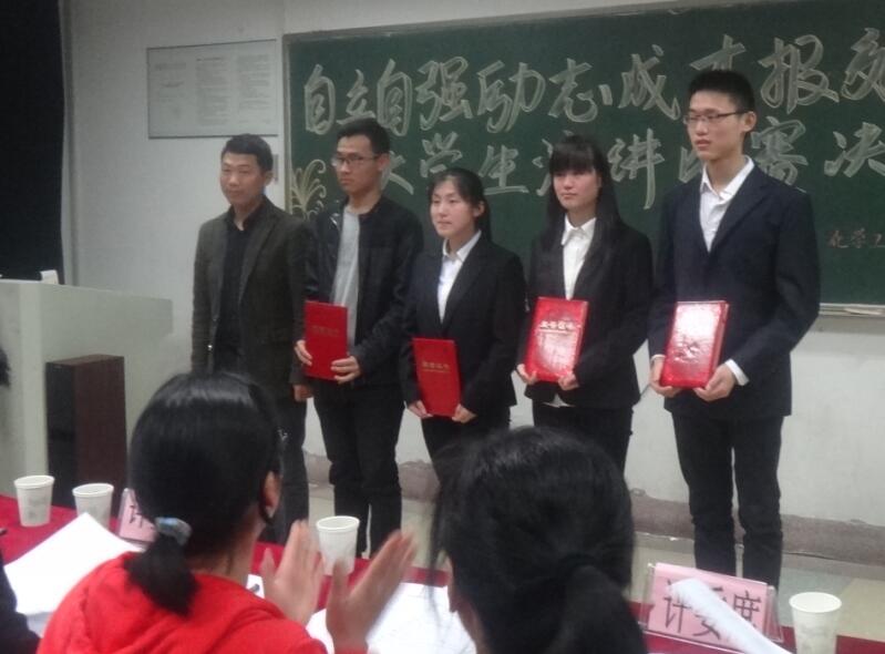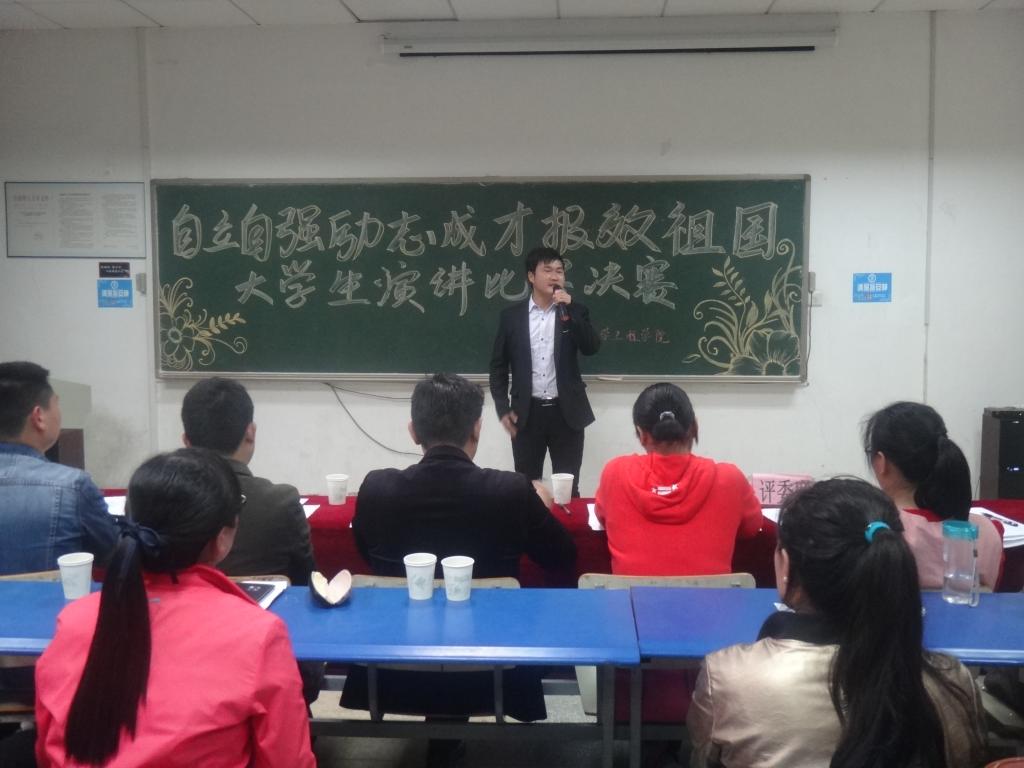 4月26日晚,化学工程学院“自立自强、励志成才、报效祖国”演讲比赛在北1101教室举行。学院党委书记徐冬生、党委副书记徐泽绵及各年级辅导员出席比赛并担任评委。