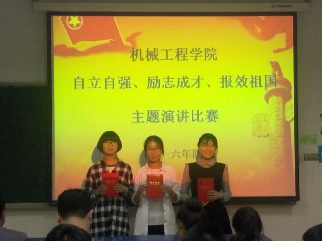 4月28日,机械工程学院在北区1404教室举行“自立自强、励志成才、报效祖国”大学生演讲比赛。学院党委副书记徐育军,低年级辅导员作为评委参加了此次比赛。