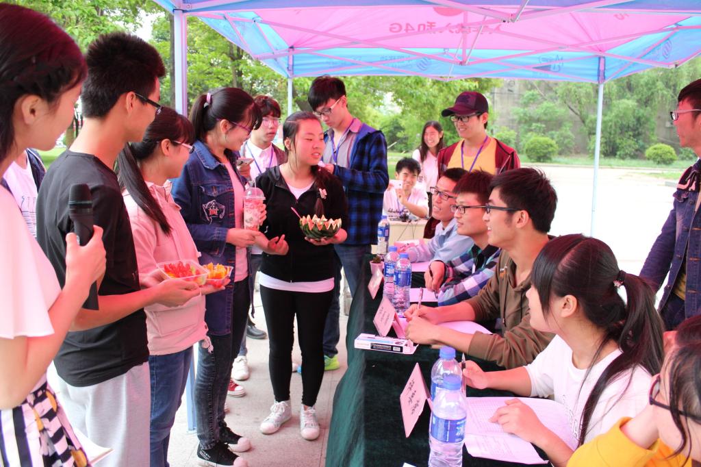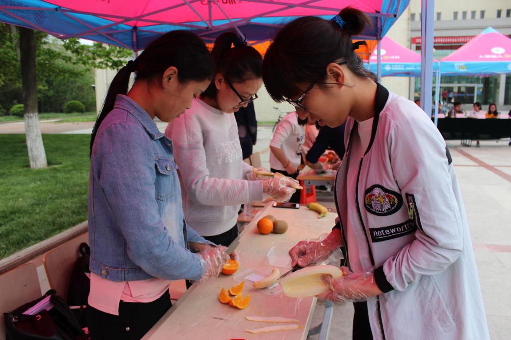 4月24日下午,测绘学院团委联合机械工程学院团委、校美食协会,在北区喷泉广场举办“三食杯”水果创意营销大赛。来自各学院共50名选手参加此次比赛。