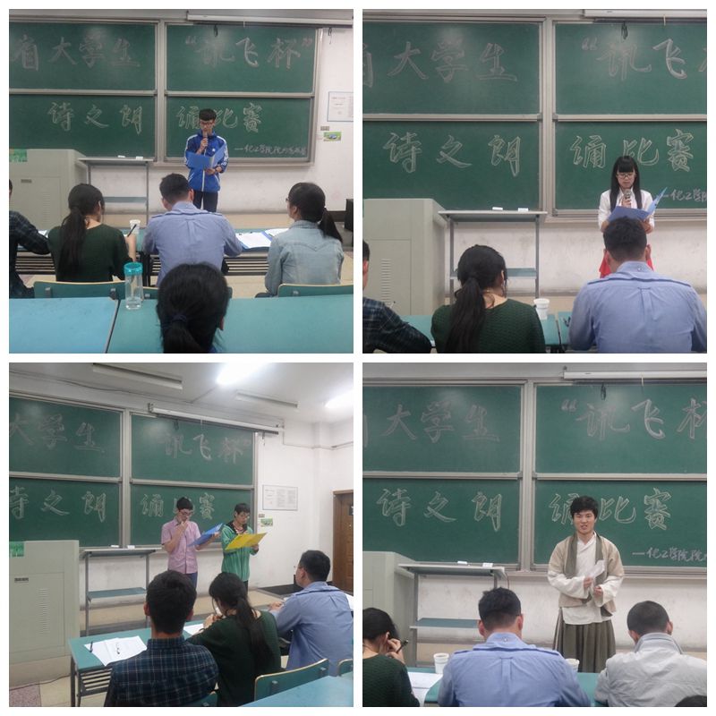 4月14日晚,化学工程学院在校北区实验楼203教室举办主题为“弘扬中华民族优良传统,践行社会主义核心价值观”诗文朗诵比赛。院团委副书记杨志华,学生会主席王晓祁出席并担任评委。