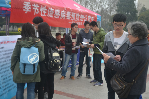3月18日,车辆2013级2班的同学在本部高层公寓附近开展了清扫活动,他们耐心清除张贴在墙上、电线杆上的小广告,擦拭清洁公交车站牌,美化了市容市貌。机电2015级2班团支部在龙湖公园、北校区喷泉广场开展了季节性流感预防知识宣传,鼓励大家保持宿舍和个人卫生,注意饮食安全,养成良好的生活习惯。