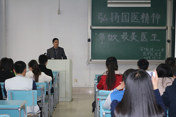 3月17日是“中国国医日”,当天,医学院举办了“弘扬国医精神,争做最美医生”主题讲座。本次讲座由本院中医学段宗新老师主讲,100余名临床医学专业学生听取了讲座。