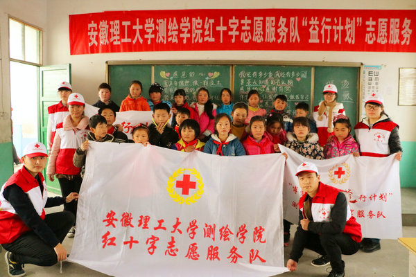 3月13日上午,安徽理工大学测绘学院红十字志愿服务队13名志愿者再度启程前往潘集区刘集红十字小学继续他们的“七彩阳光,爱心课堂——关爱留守儿童”活动。
