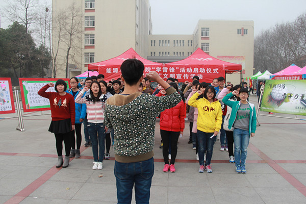 3月5日上午,能源与安全学院在北区喷泉广场举行 “学雷锋”活动启动仪式暨“清朗网络”文明宣传活动。